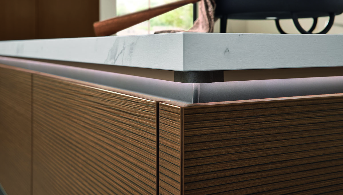 Die markanten Fronten in Holzstruktur und Rillenoptik zählen zu den aktuellen Design-Highlights von Ballerina. Gleichmäßig gesetzte Rillen und natürliche Maserungen verleihen jeder Küche eine lebendige Oberfläche, die – je nach Lichteinfall – faszinierende Farbnuancen von hell bis dunkel erzeugt.