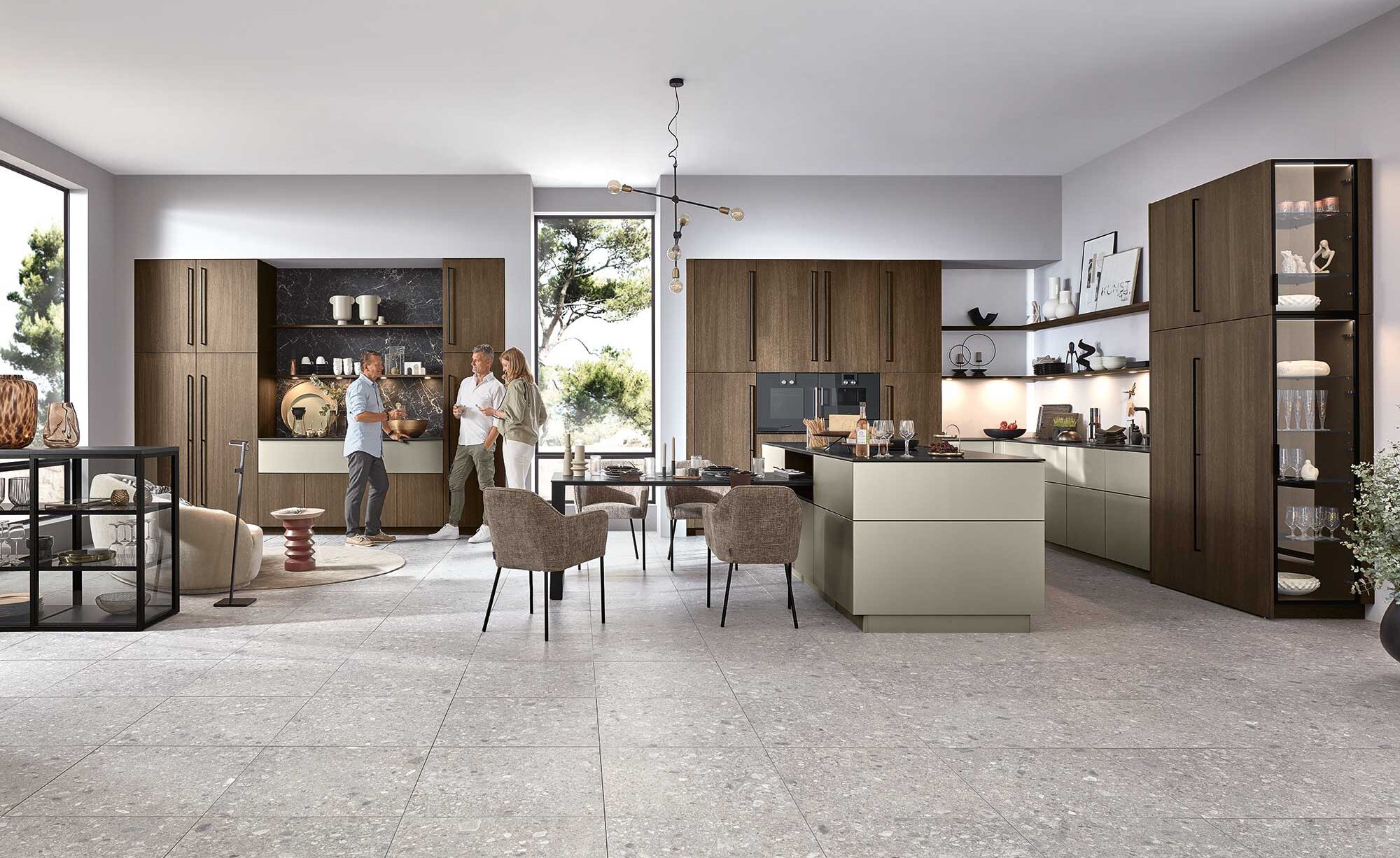 Das Sideboard auf FREESTYLE-Sockel-Modul verbindet Funktion mit Leichtigkeit. Durch das filigrane Gestell wirkt es schwebend und fügt sich nahtlos in den Wohnbereich ein. So entsteht ein harmonisches Gesamtkonzept, das Küche und Wohnzimmer gestalterisch vereint – ganz im Sinne von „Alles à la Carte“.