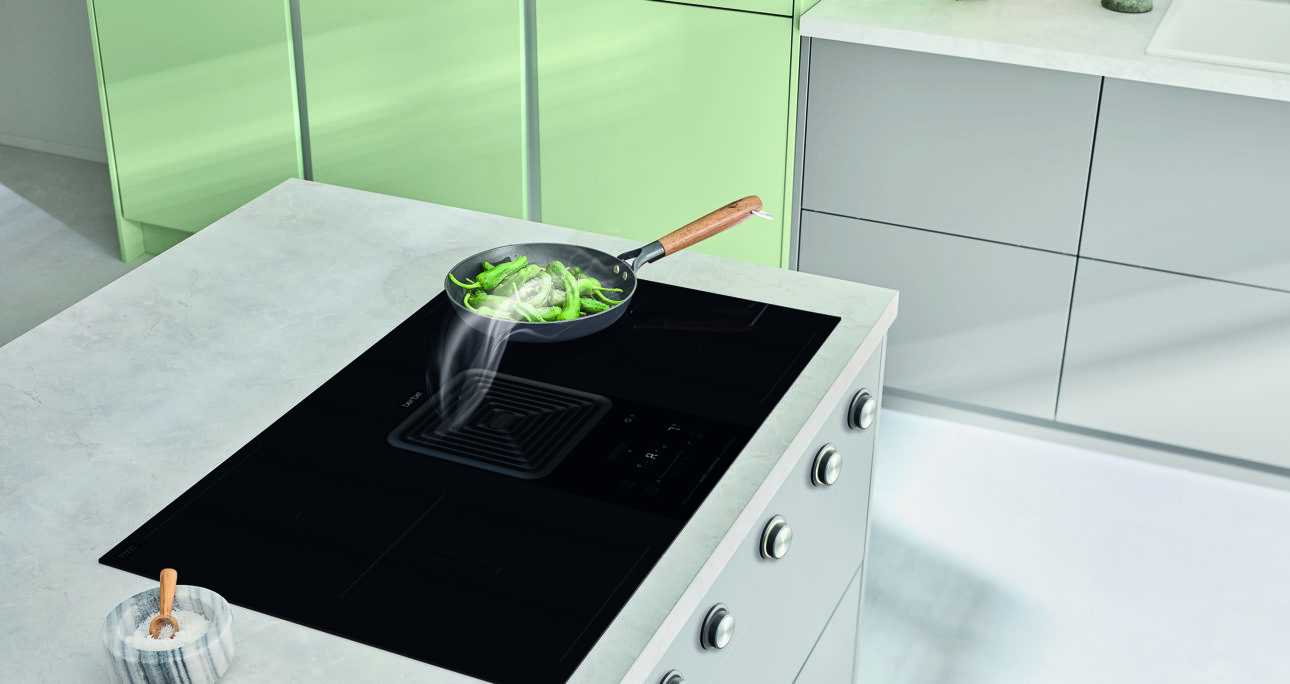 Das platzsparende Design schafft Bewegungsfreiheit beim Kochen, während das innovative Vertical Flow-Prinzip Dampf und Gerüche effizient erfasst.