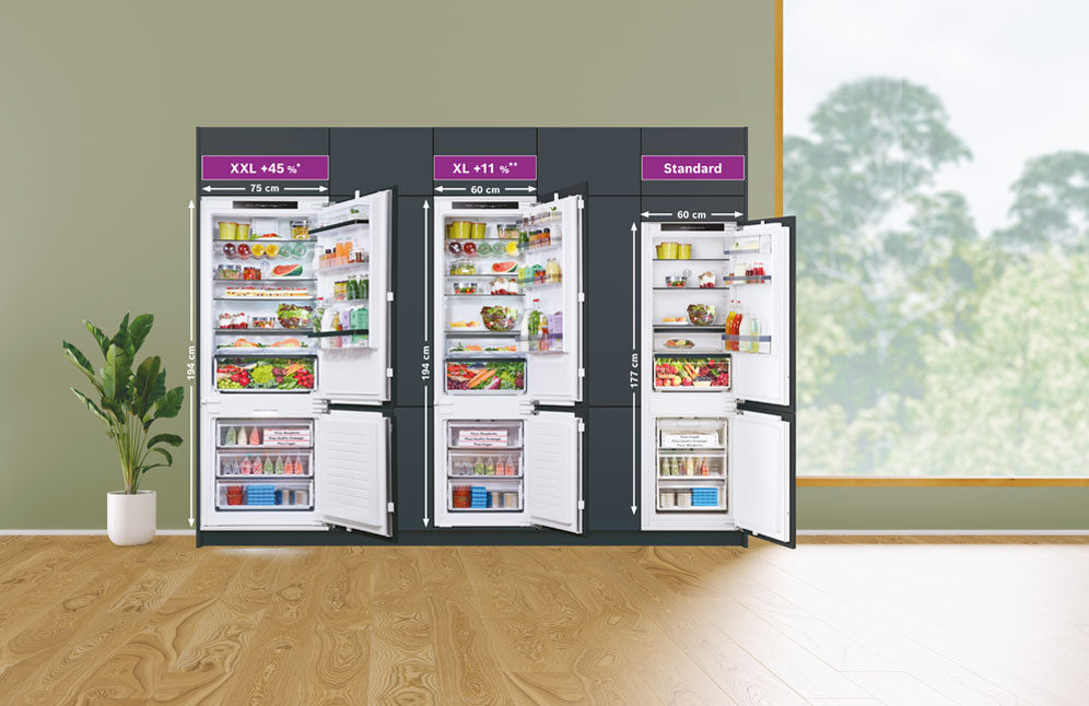 Die BOSCH Einbau-Kühl-Gefrierkombinationen in XXL oder XL sind echte Raumwunder mit System.
