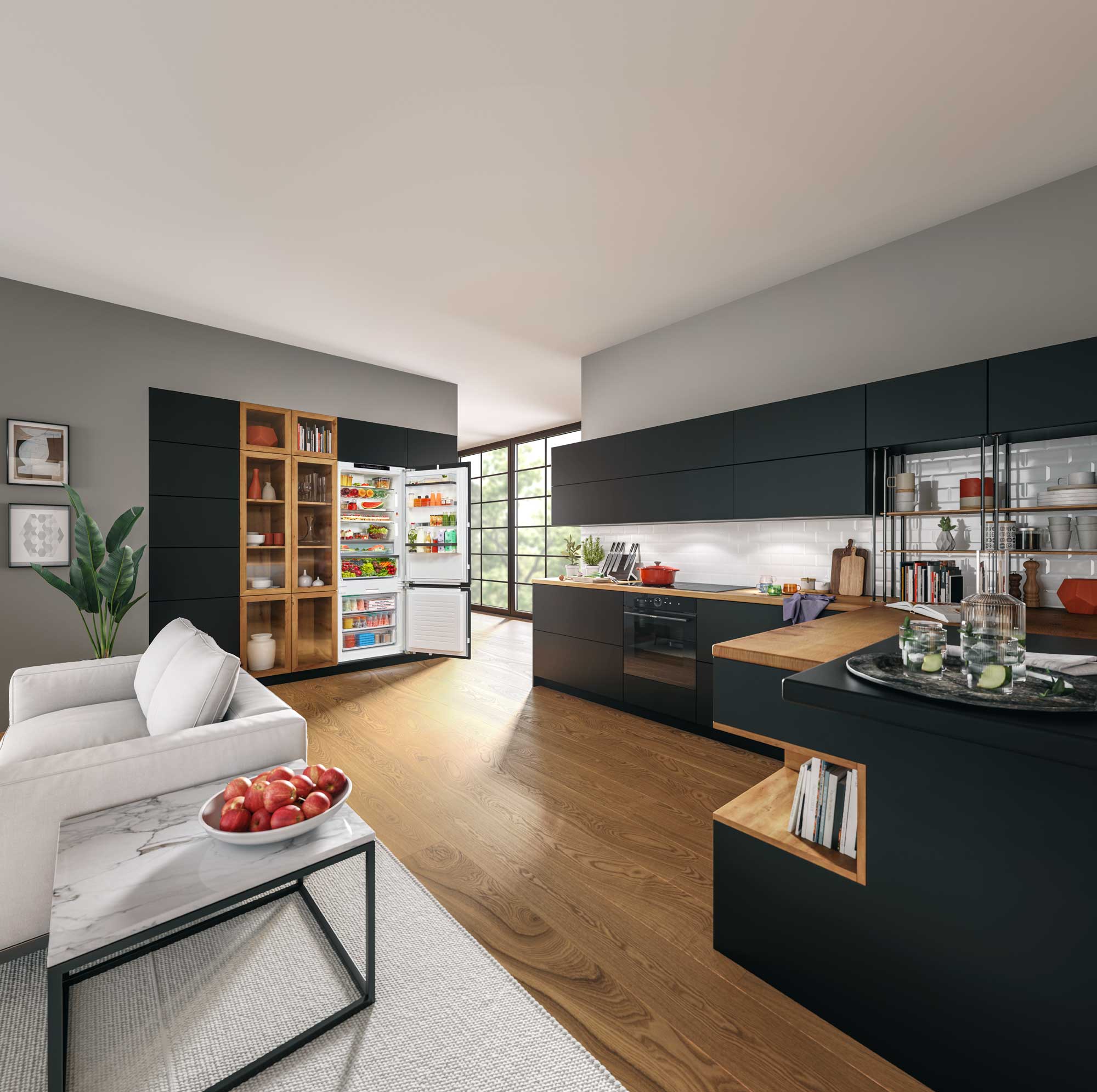 Dank energieeffizienter LED-Beleuchtung behalten Sie selbst in den hintersten Fächern den Überblick, ohne störende Blendungen.