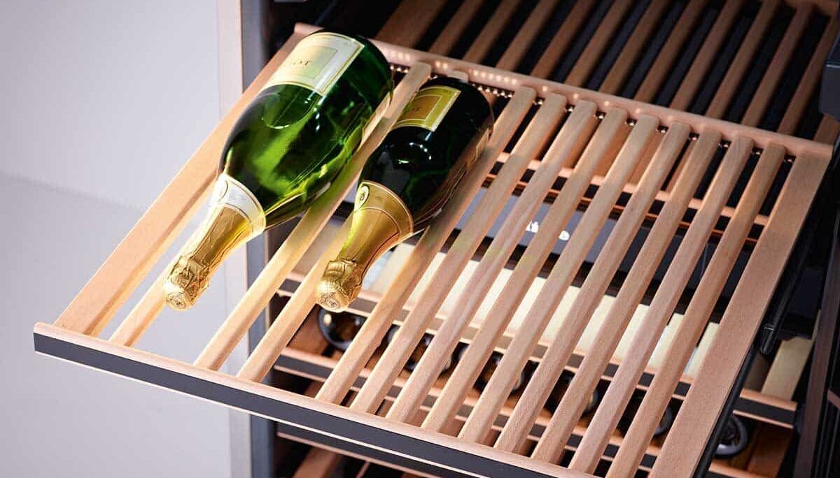 Mit dem Flaschenpräsenter „Selector“ von Miele setzen Sie Ihre Lieblingsflaschen elegant in Szene.