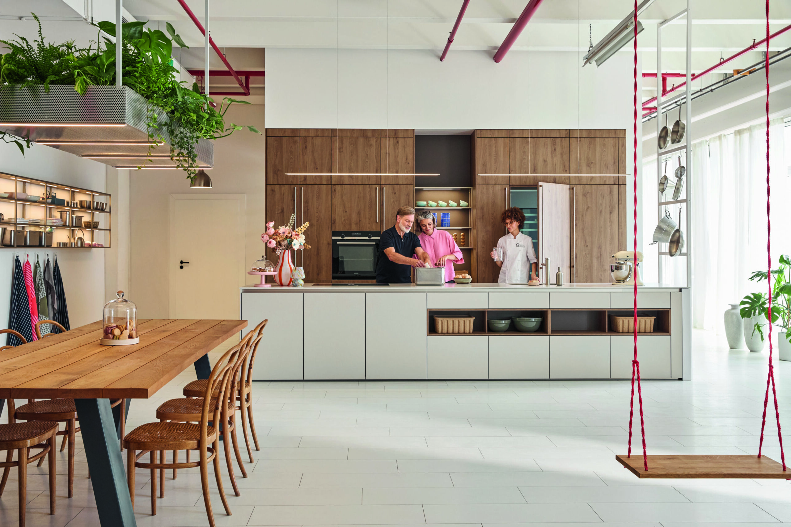 Offene Regale schaffen Übersicht und erleichtern das Verstauen von Vorräten und Küchenutensilien. Geräte, Konserven oder Backformen finden ihren festen Platz, während die offene Gestaltung für ein luftiges, modernes Ambiente sorgt. Die Kombination aus Funktion und Design steht bei Schüller im Mittelpunkt.