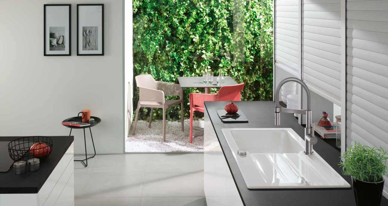 Perfekt abgestimmt auf die Keramikspülen von Villeroy & Boch, fügen sich die formschönen Armaturen harmonisch in das Gesamtbild ein – für ein stilvolles, funktionales und langlebiges Küchenerlebnis.