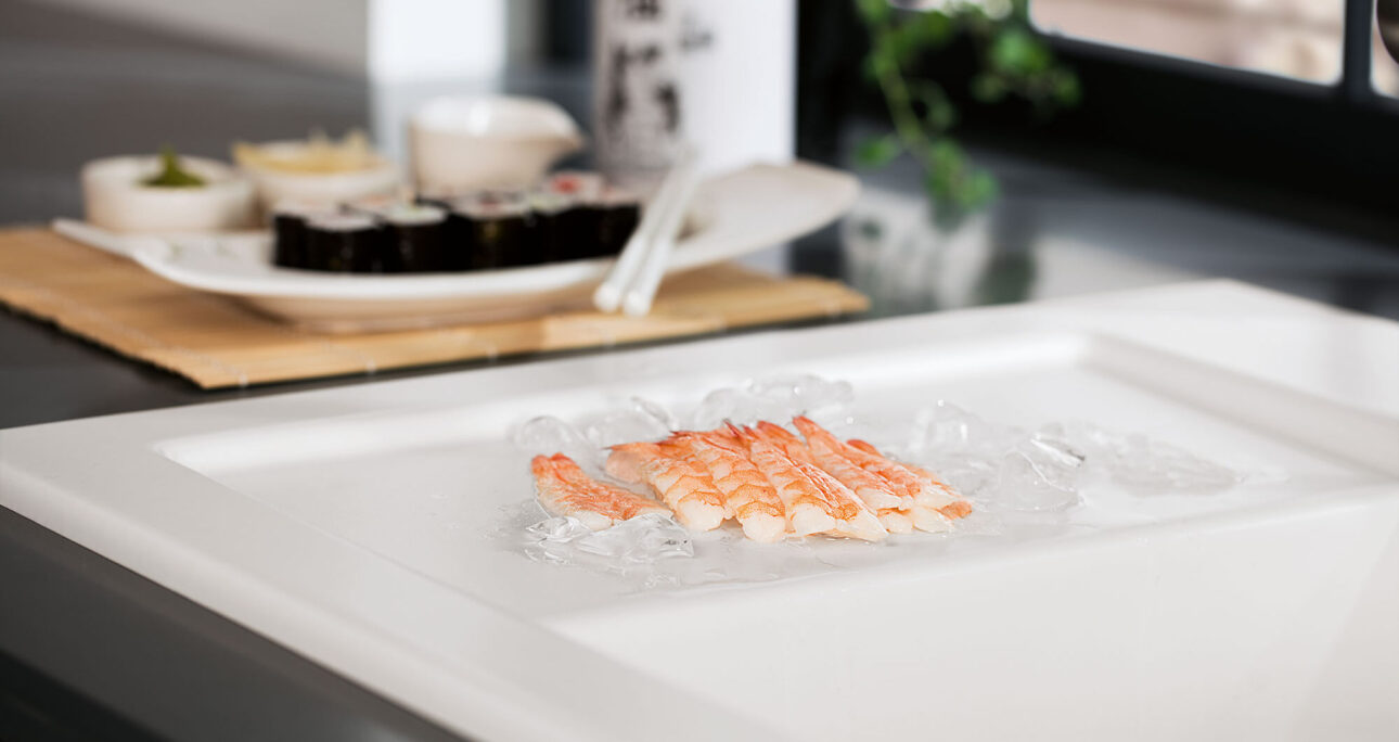 Flächenbündige Spülen: elegante, ebene Übergänge ohne sichtbare Ränder für eine besonders leichte Reinigung.