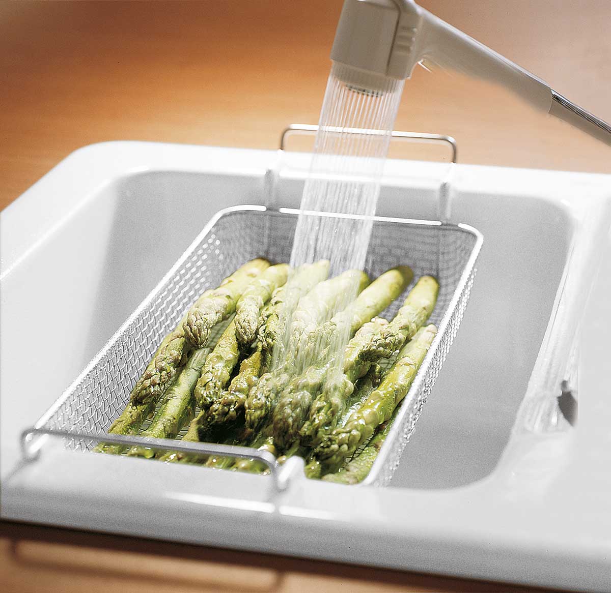 Einhängeschalen – Ideal, um Obst oder Salat direkt in der Spüle zu waschen.